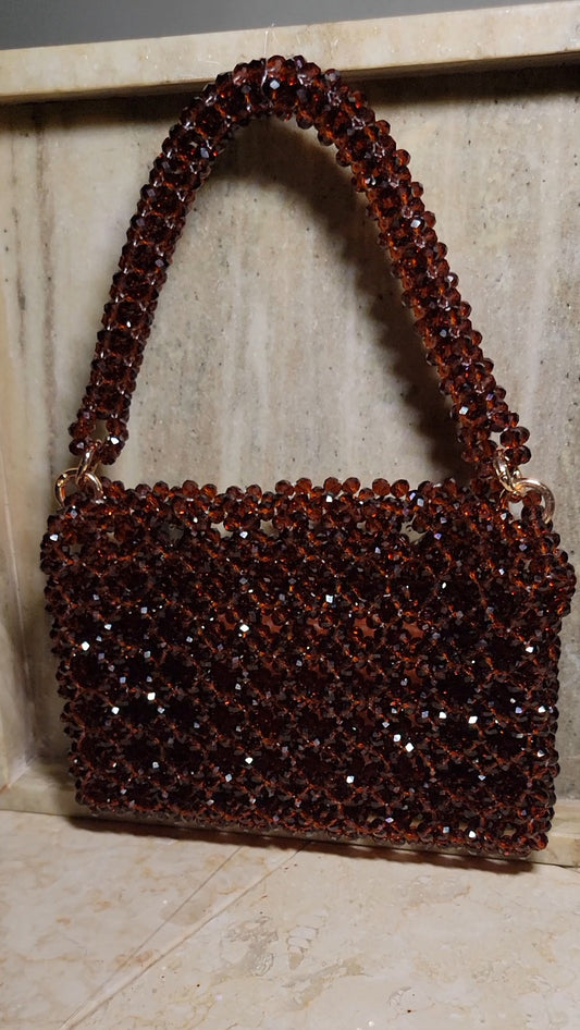 Beaded Clutch Bag in Mahogany Brown